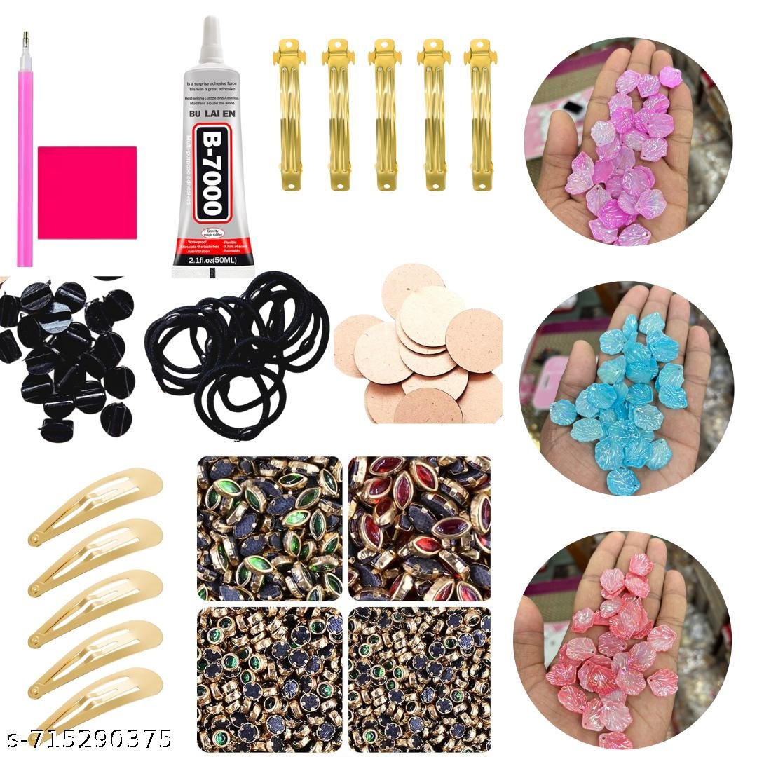 The Customized Accessory Kit is a complete DIY crafting set designed to help you create beautiful and stylish hair accessories with ease. This versatile kit includes center clips, hair bands, attachers, MDF bases, tic tac clips, along with decorative shells and fitting stones in multiple colours.